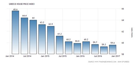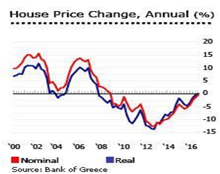 根据希腊房价走势图和全球地产导势来看,希腊2008年欧洲经济危机爆发以来到2015年房价随之陆续下跌的第七年,虽然与急速大幅下降的2012年和2013年比开始放缓,但2017年初也没有大幅上涨的趋势。