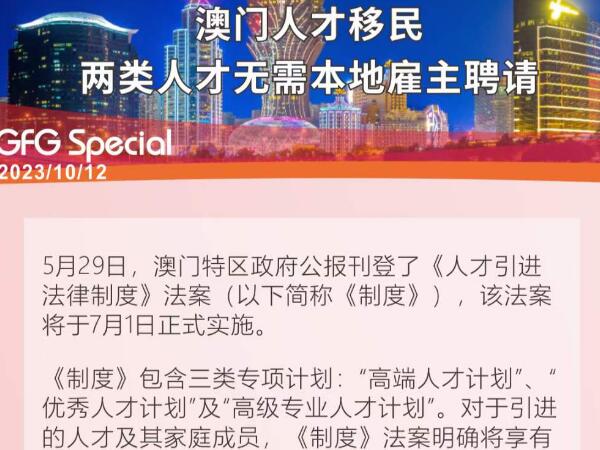 澳门人才移民,两类人才无需本地雇主聘请