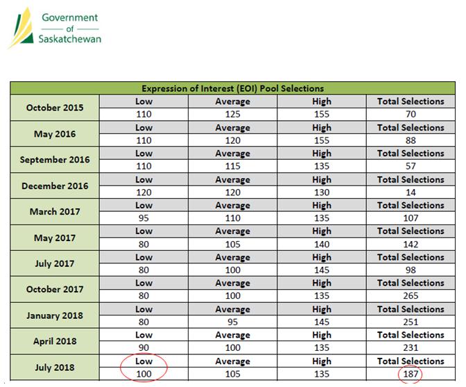 加拿大时间7月18日,萨省商业移民EOI本年度第三次筛选完成,本次筛选共筛选出187位申请人。相较上次筛选减少了44人。本次筛选最低分为100分。对比上次筛选(2018年4月)最低分上涨了10分,但是和其他省份的要求比较起来,还是可以接受的。